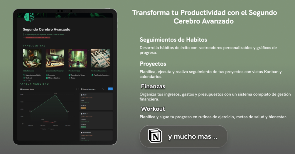 Organiza tu conocimiento y potencia tu productividad. Segundo Cerebro Avanzado: tu mente digital en Notion.